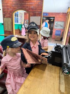 We enjoyed looking at some old styles of uniform, and some old photos of how the classrooms used to look. We also found some photos of girls doing something called Drill. Mrs Johnstone gave us an old fashioned Drill lesson instead of a PE lesson. She pretended to be rather fierce and shouted instructions such as ‘left arm up, right leg forward’ . We had to be silent and follow the instructions immediately. Luckily she soon changed back into the Mrs Johnstone that we know well and we all decided that our PE lessons nowadays are much more fun!