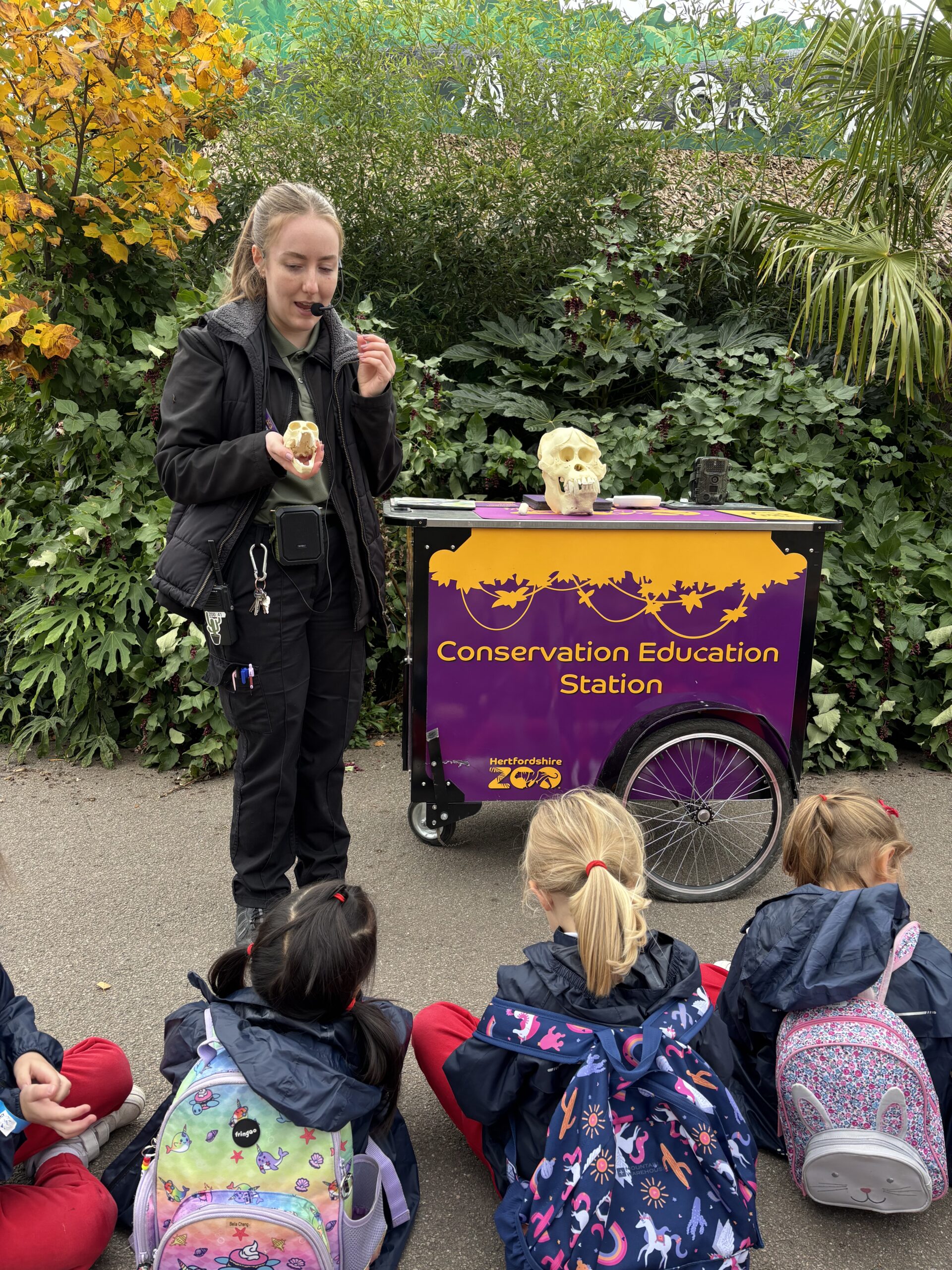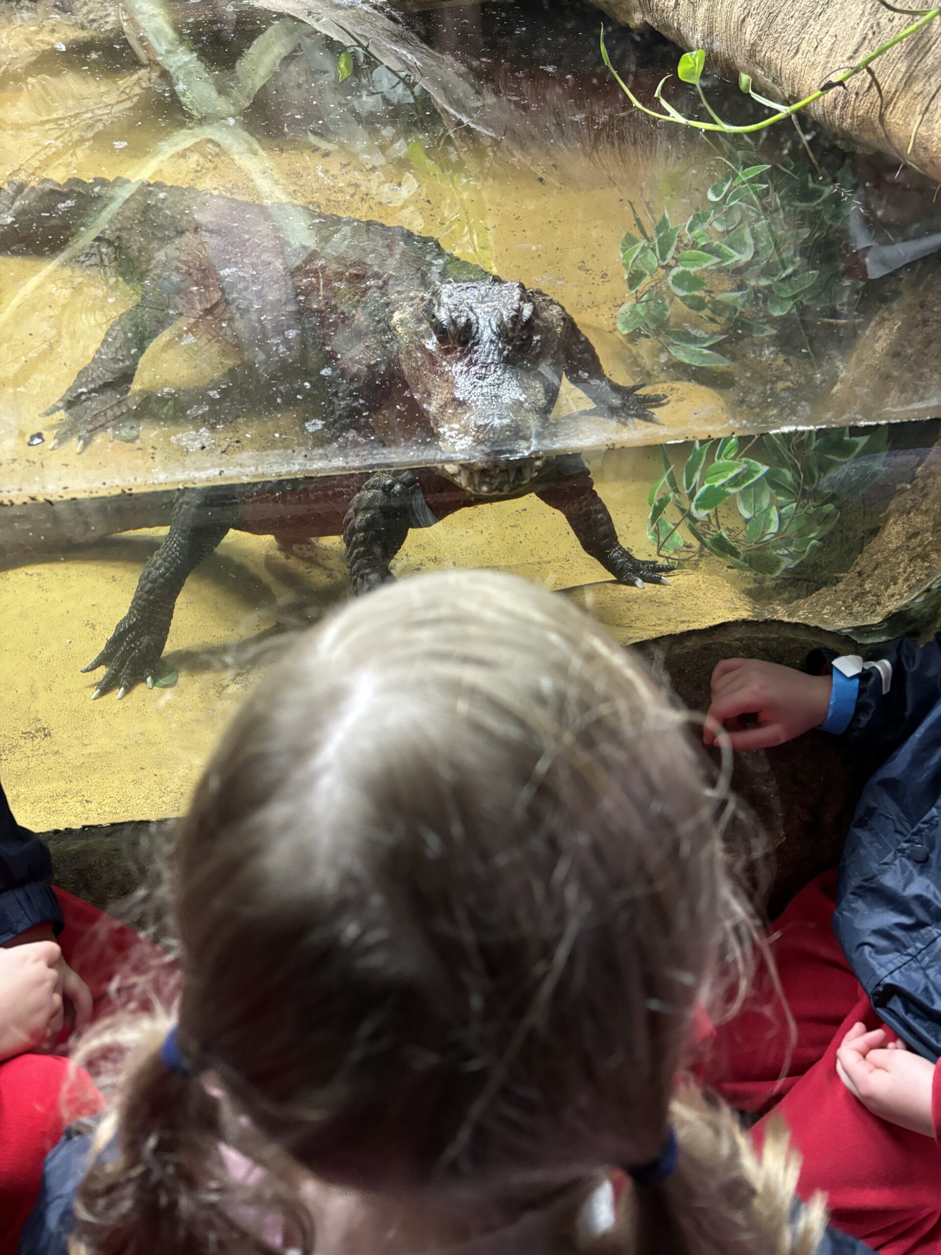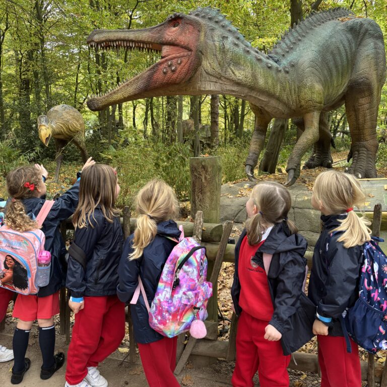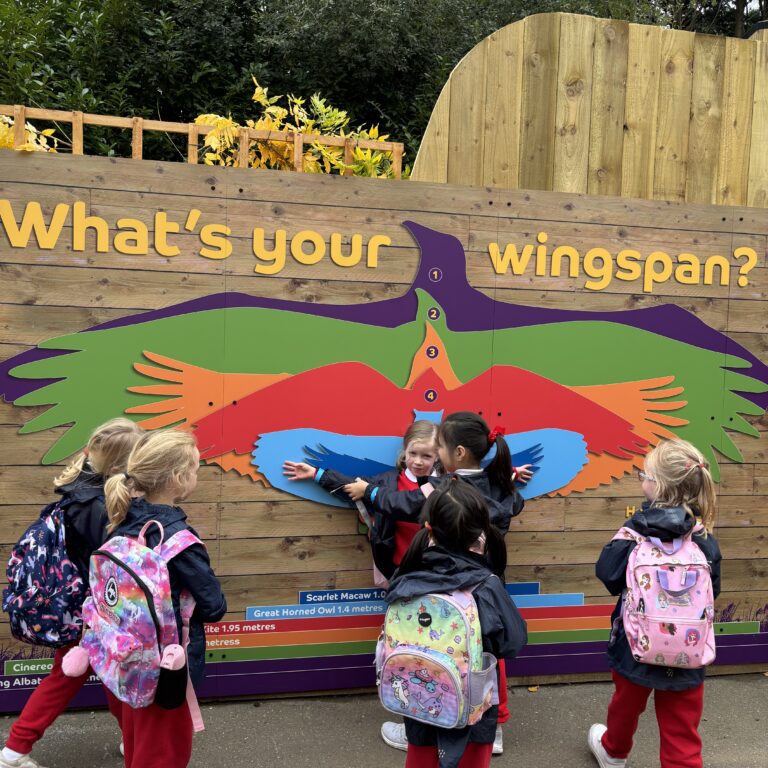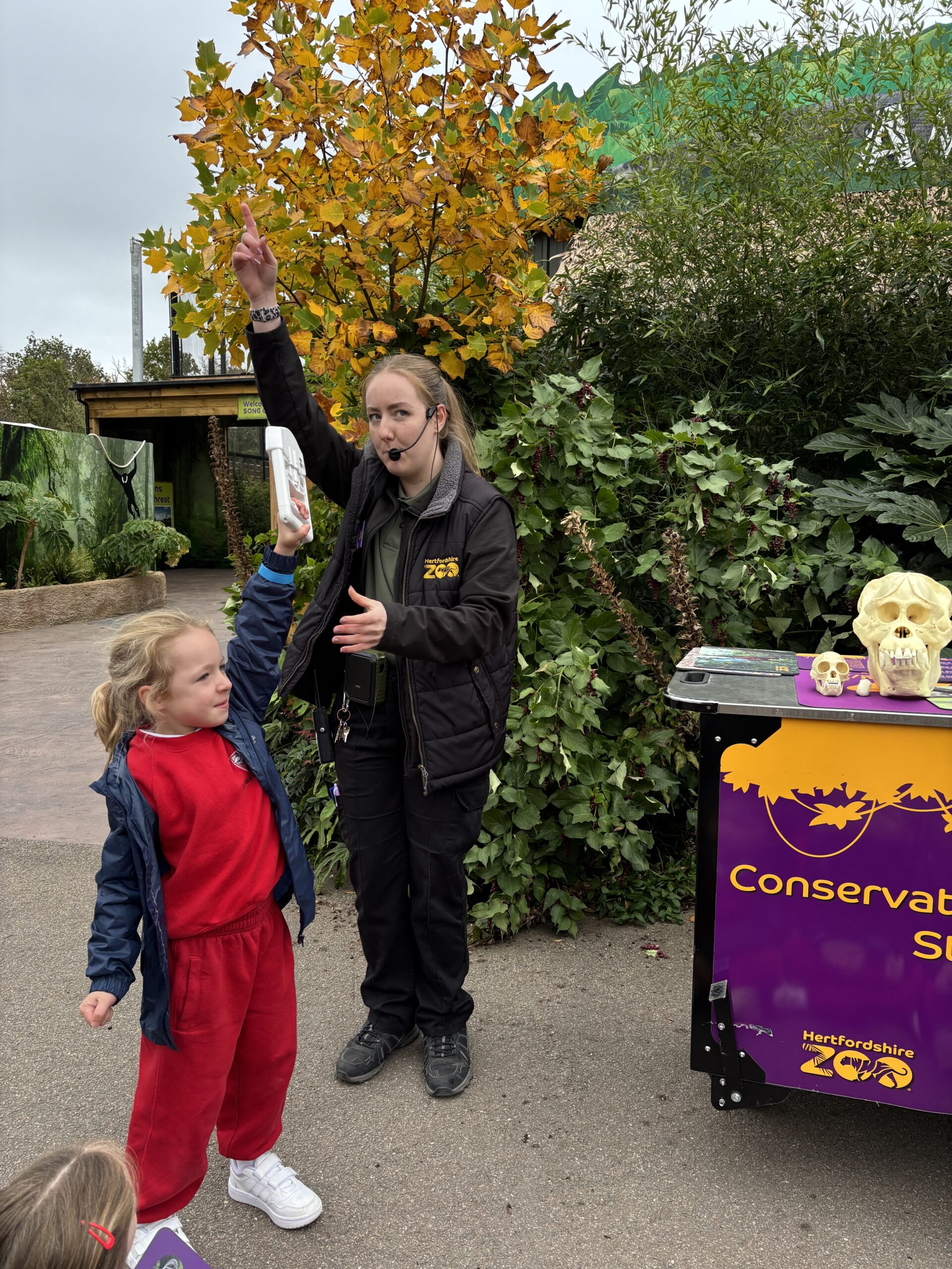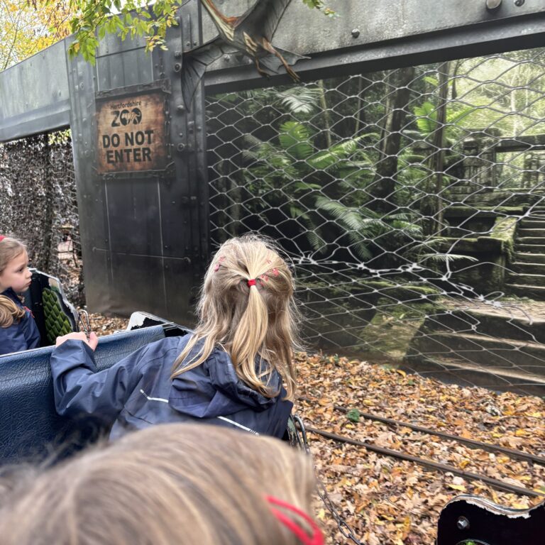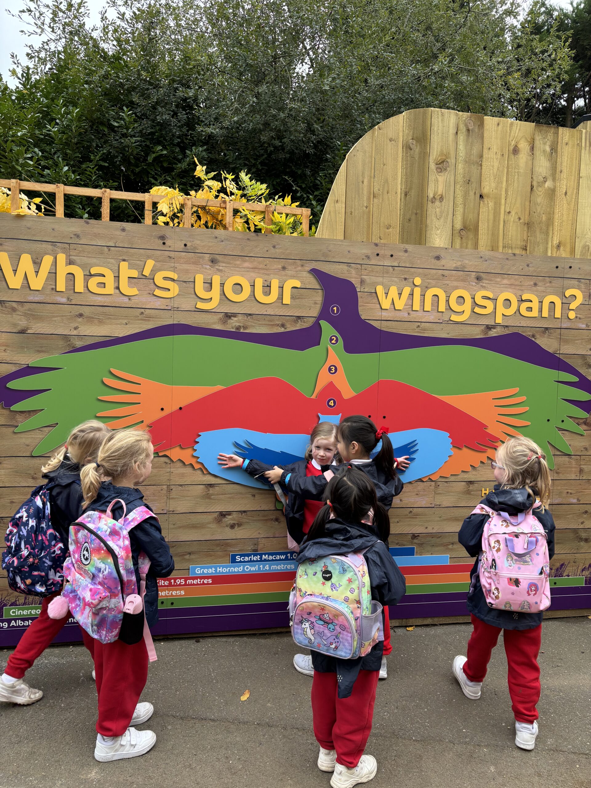To end the half-term and to bring the next part of our Science work to life, we visited Hertfordshire Zoo. We bravely crept around Dinosaur World, before jumping on the train to be terrified by the Velociraptors! We then ventured into the main zoo to be delighted by such a wide range of animals, including lions, jaguars, sun bears, goat, wallabies, emus, tortoises, porcupines, crocodiles, snakes and so much more! We loved meeting Becky, the Zoo Keeper, who introduced us to the gibbons. We learnt about the differences between monkeys and apes, looked at real skulls and tested our strength to see how we compared against the monkeys and apes! We took place in a super workshop, looking at ways to group animals including mammals, reptiles, birds, fish and amphibians. We became detectives trying to work out which animals belongs in each group. We finished the day with a quick tour of the birds, comparing our arm stretch to the wingspan of different birds.