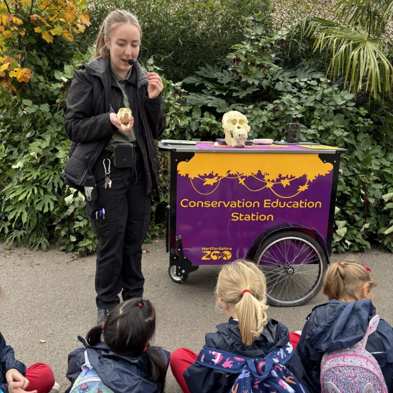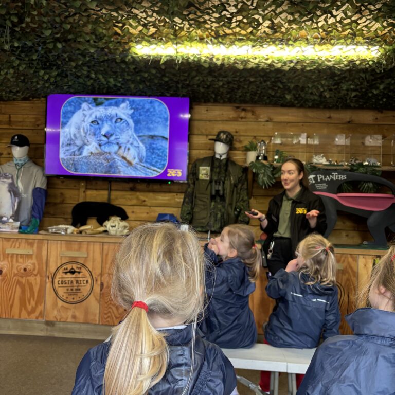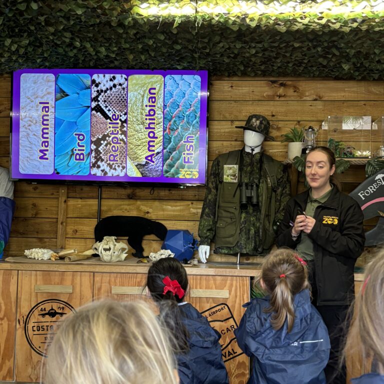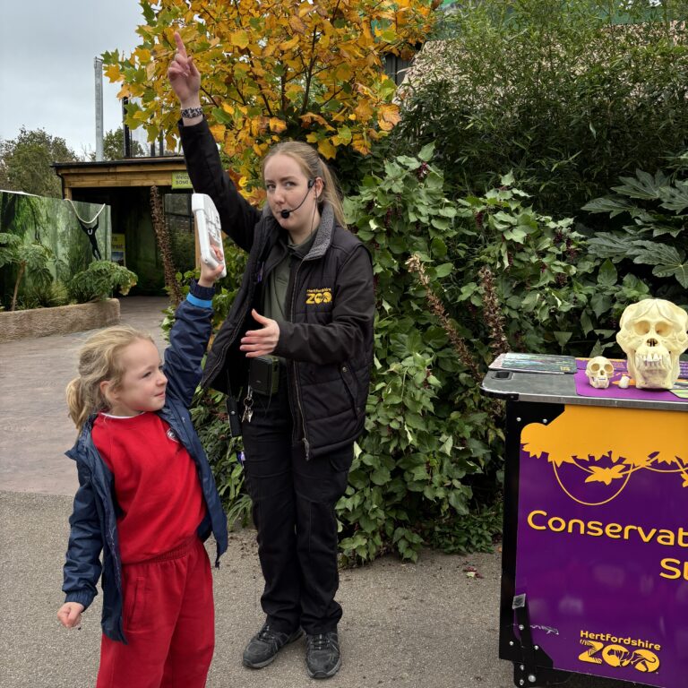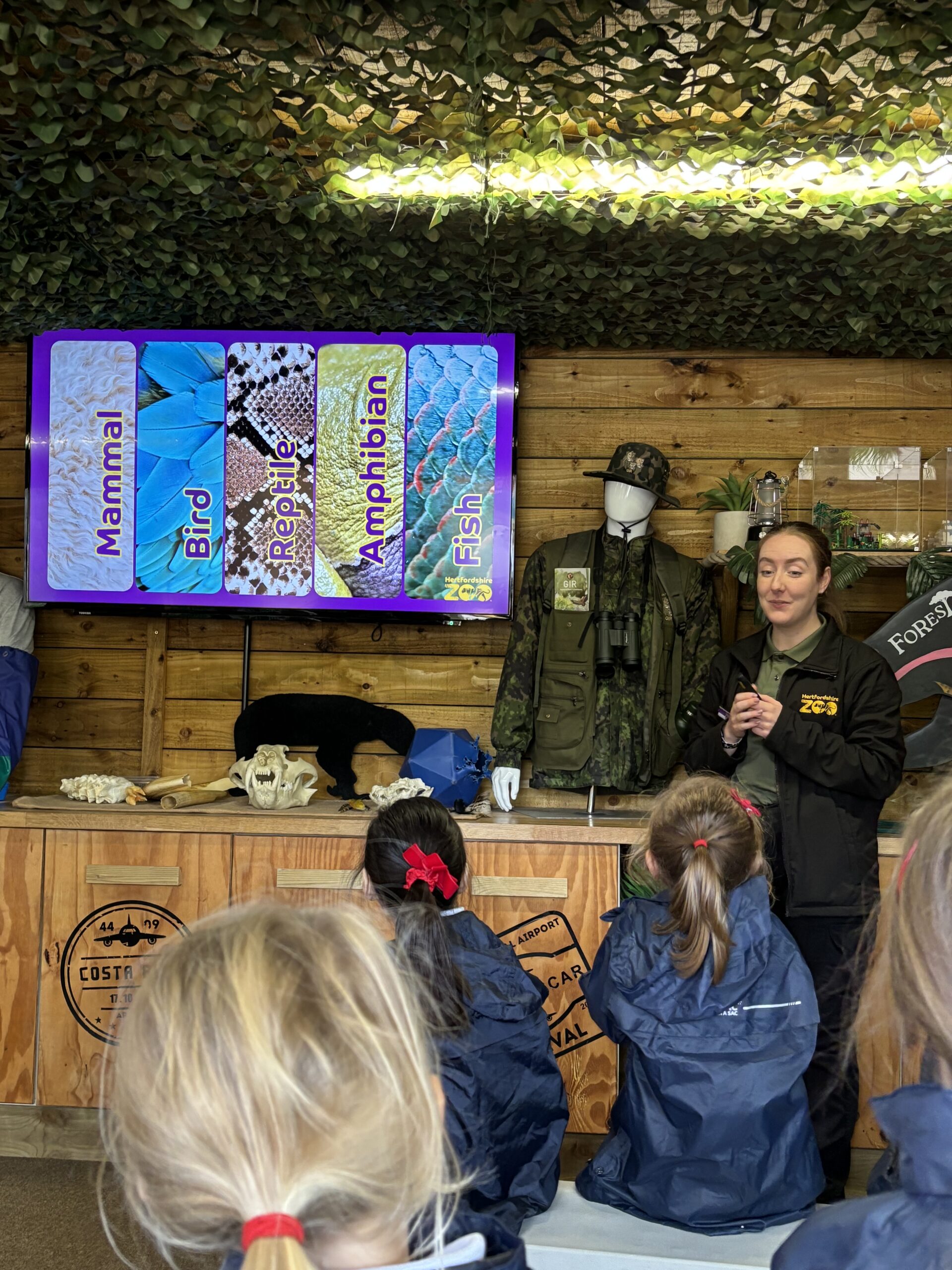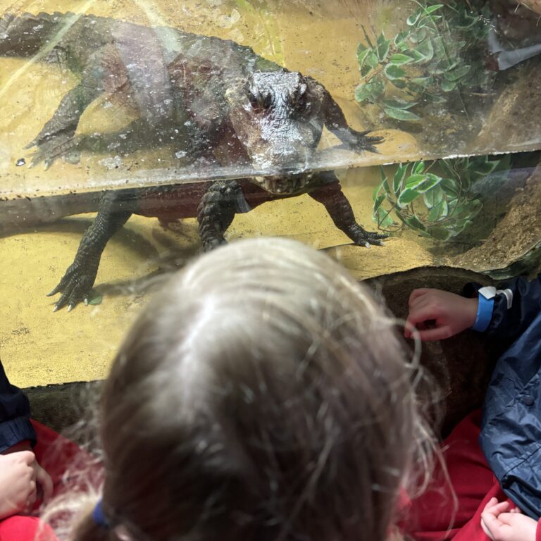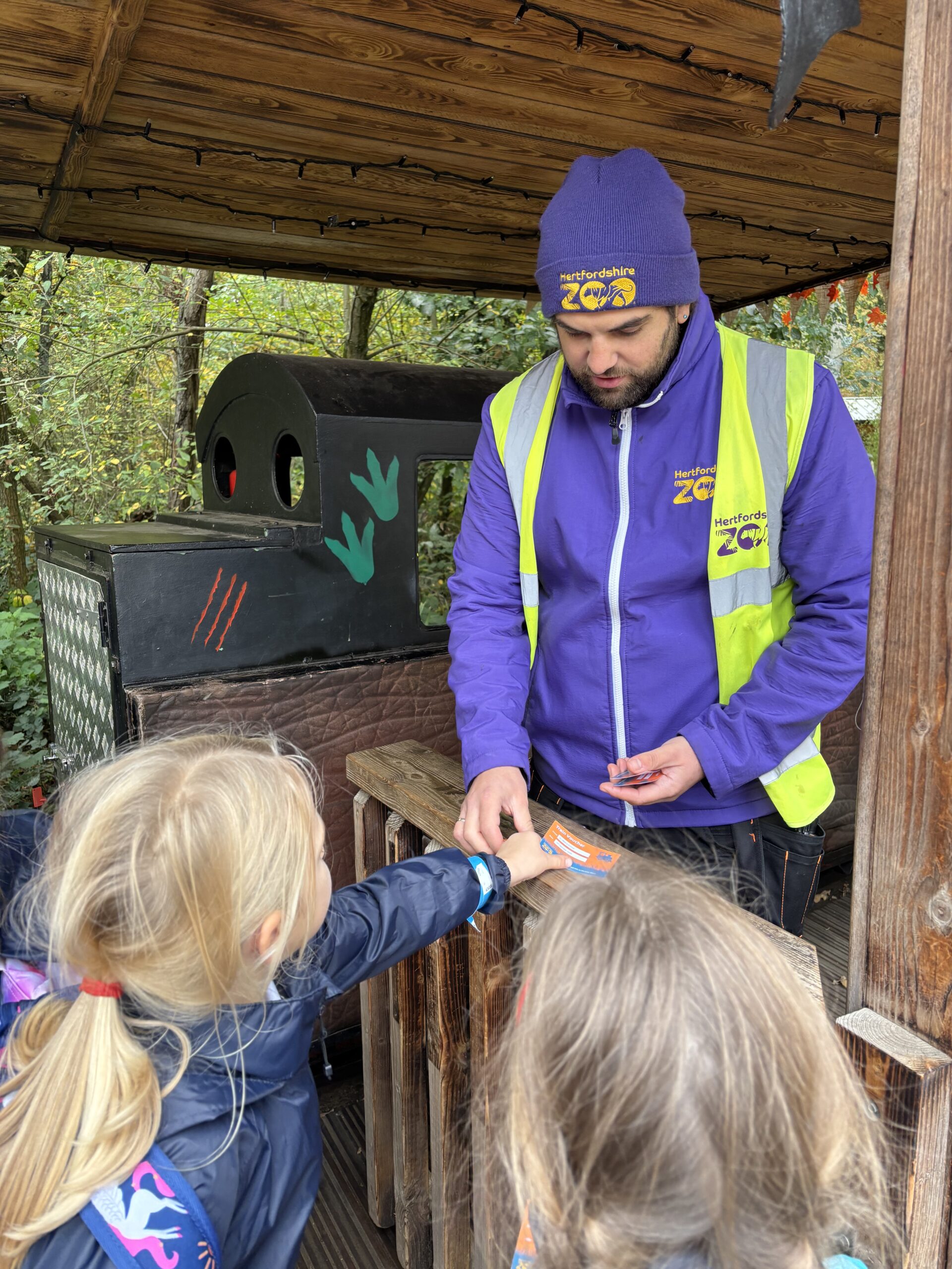 To end the half-term and to bring the next part of our Science work to life, we visited Hertfordshire Zoo. We bravely crept around Dinosaur World, before jumping on the train to be terrified by the Velociraptors! We then ventured into the main zoo to be delighted by such a wide range of animals, including lions, jaguars, sun bears, goat, wallabies, emus, tortoises, porcupines, crocodiles, snakes and so much more! We loved meeting Becky, the Zoo Keeper, who introduced us to the gibbons. We learnt about the differences between monkeys and apes, looked at real skulls and tested our strength to see how we compared against the monkeys and apes! We took place in a super workshop, looking at ways to group animals including mammals, reptiles, birds, fish and amphibians. We became detectives trying to work out which animals belongs in each group. We finished the day with a quick tour of the birds, comparing our arm stretch to the wingspan of different birds.