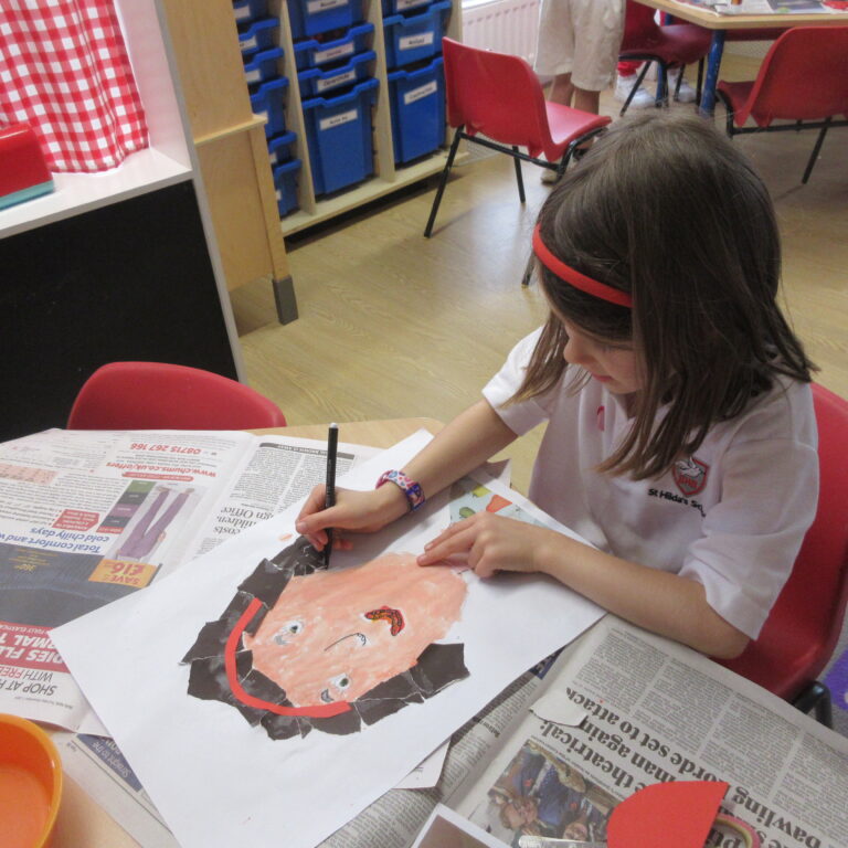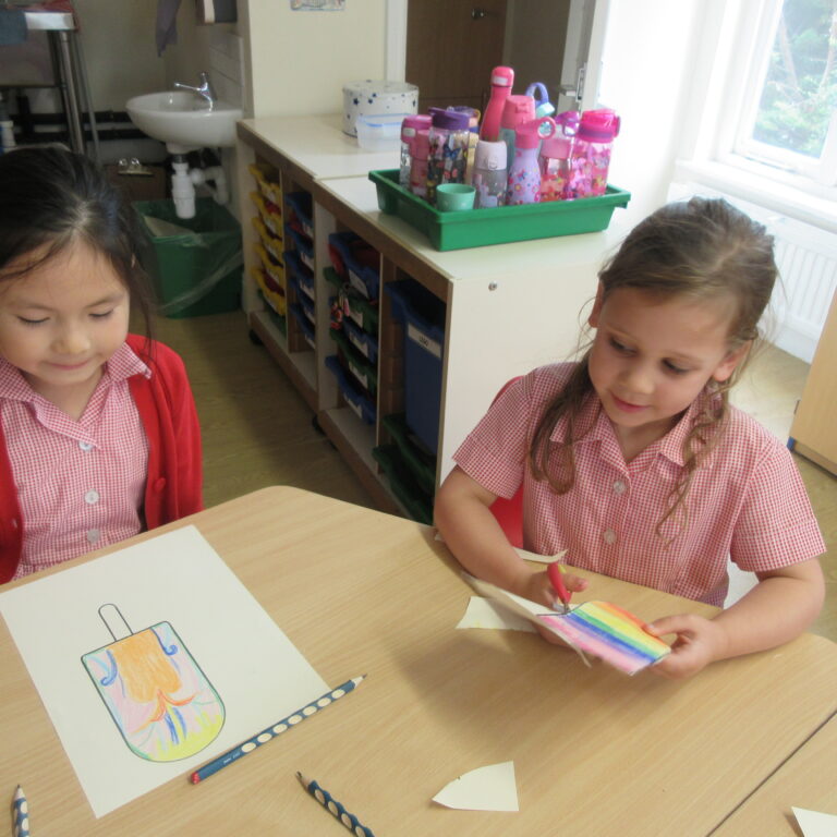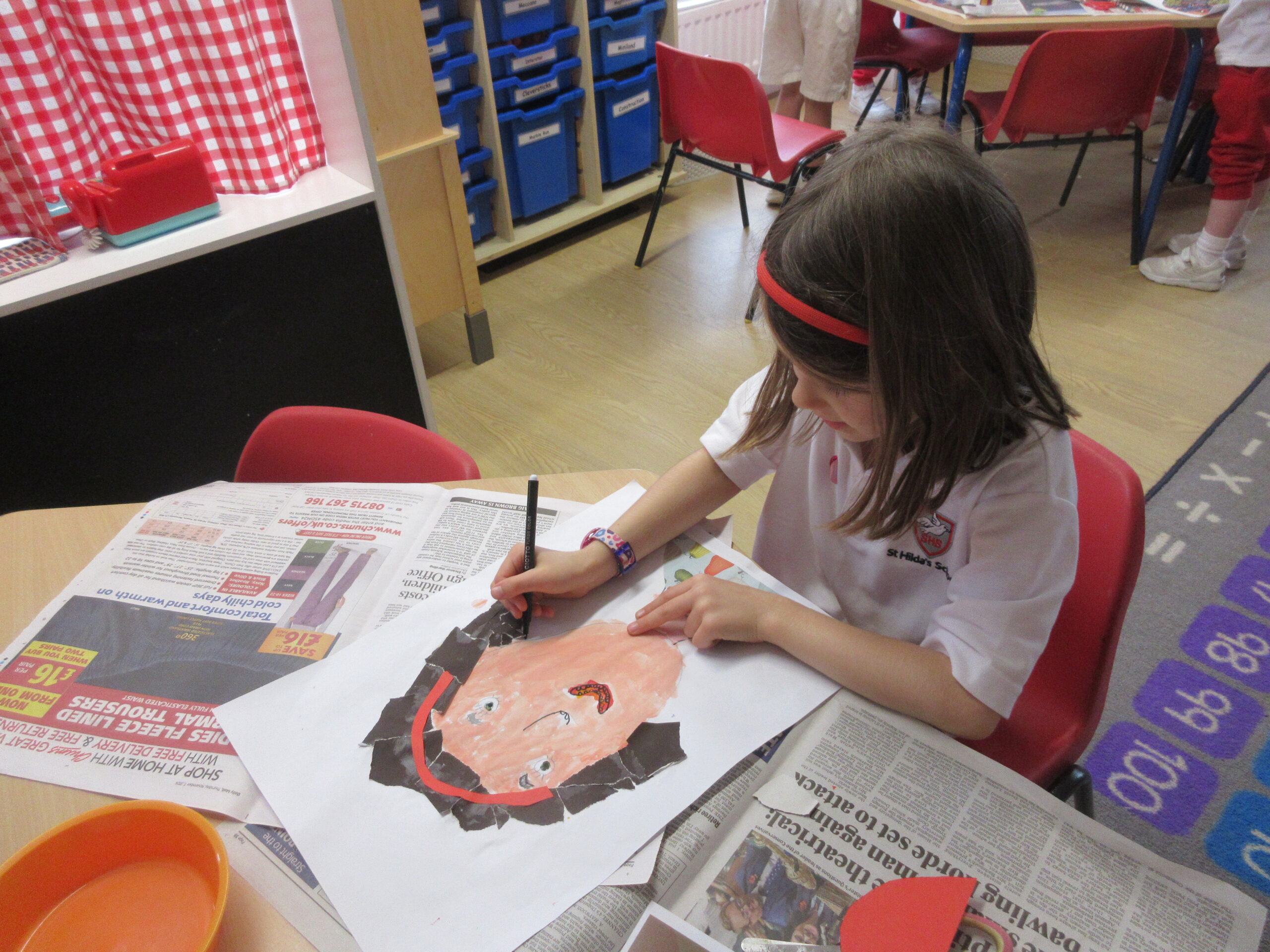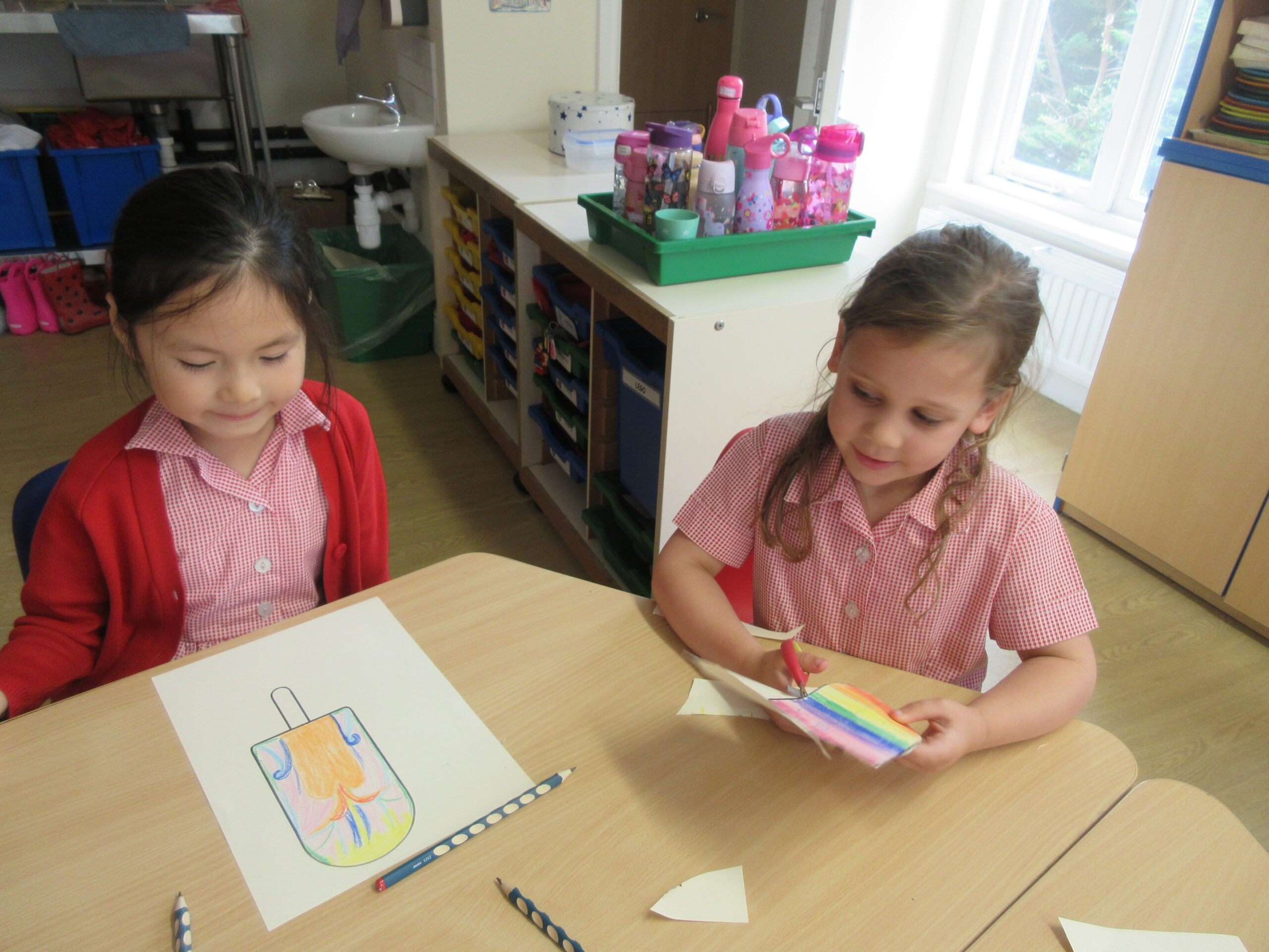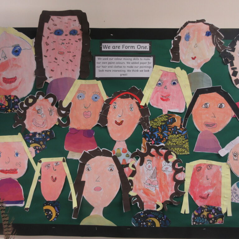 In Art, we have been learning about colours and colour mixing. We loved listening to the colour mixing story, ‘Mixed’, by Arree Chung, and used the primary colours to make the secondary colours. We used them to paint our own picture. We went on to study our faces and use our colour mixing skills to paint our portraits. We decided to use paper for our hair and clothes, to add some more interest. We think we look great!
