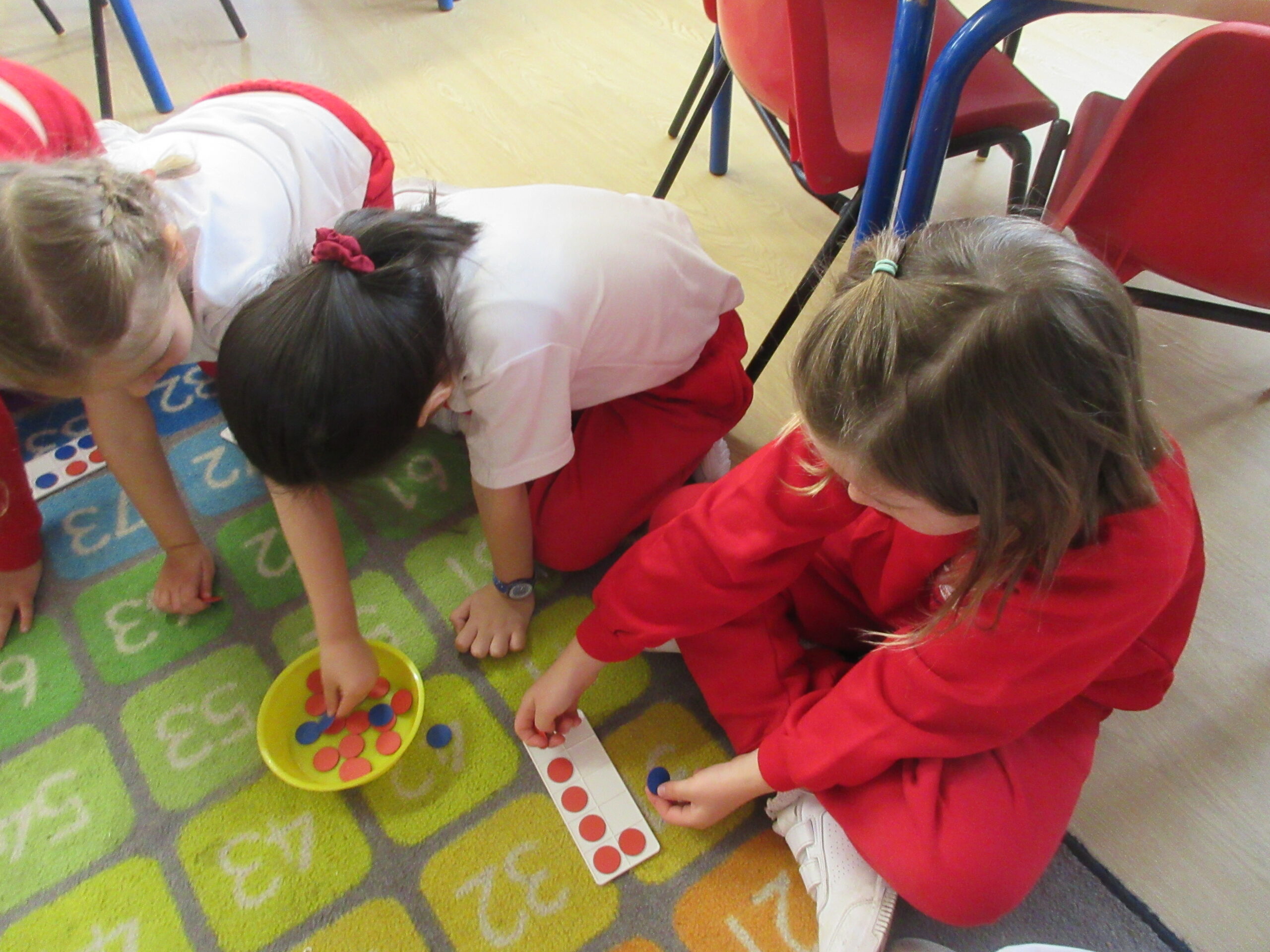 In Maths, we have enjoyed learning more about numbers. We have been practising our counting skills, forwards and backwards. We have been using mathematical language, including greater than, less than, more, fewer and equal to. We have been adding two numbers together, using our amazing fingers, and counters and tens frames. We have been introduced to cherry models and bar models, and have used them to work out ways to make different amounts.