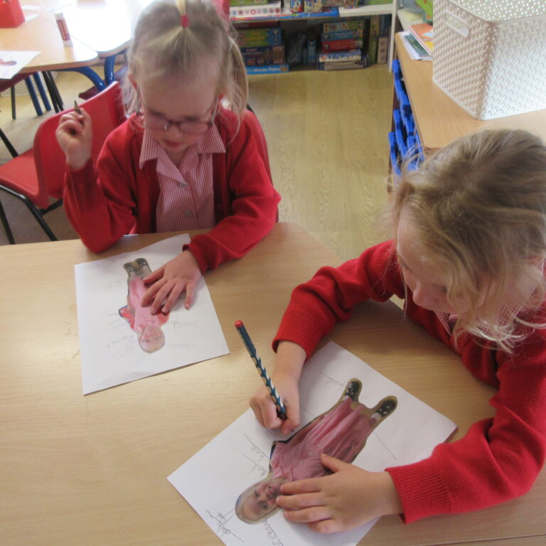 In Science, we are learning about Ourselves.  We have focused on our facial features, and their functions. We then learnt all about our five senses, and which part of the body is associated with each sense. We then moved on to discovering more about what is inside our body, including learning about our bones and main organs. We learnt how to use scientific labels, as well as developing our scientific enquiring minds using real life observations, videos, photographs and non-fiction books.