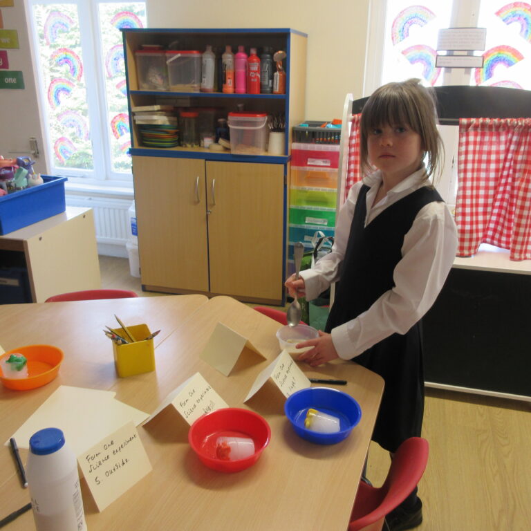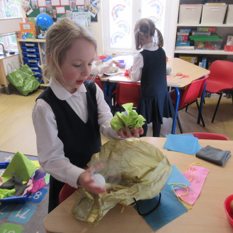 In Science, we enjoyed carrying out simple experiments using different materials. We tested different ways to melt ice to help little toys to escape, and discovered that the sun and salt help ice to melt the quickest. We also tested different materials to see which ones sink and float, and we tested which materials would make the best waterproof material for a coat in the rain.