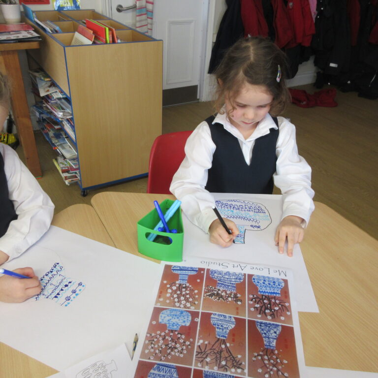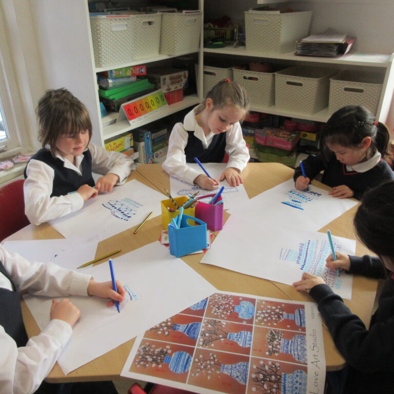 In Art, we travelled to Japan in our imaginations and drew the most beautiful blue and white vases. We painted spring blossom in them and gave them to our wonderful Mums for Mother’s Day.