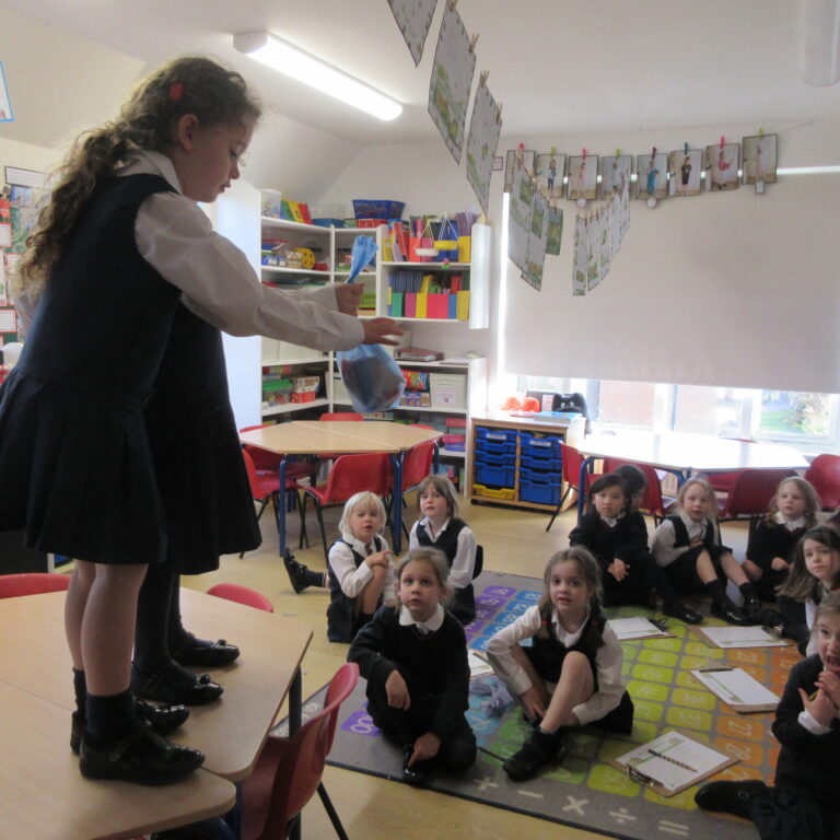 We were delighted to be invited into Form IV to meet Miss Sewell and her class. They had been writing stories based on The Tunnel, by Anthony Browne. We enjoyed listening to the girls’ stories and hope that we can write stories as good as theirs when we are older.
