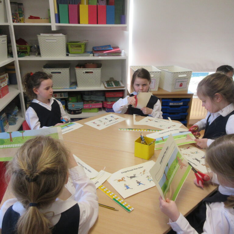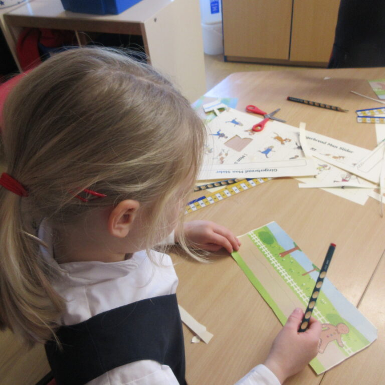 In Design and Technology, we learnt how to make moving pictures using simple mechanisms. We used a slider technique to make The Gingerbread Man move across a field. We then used the skills we had learnt to design our own moving Easter cards for our family.