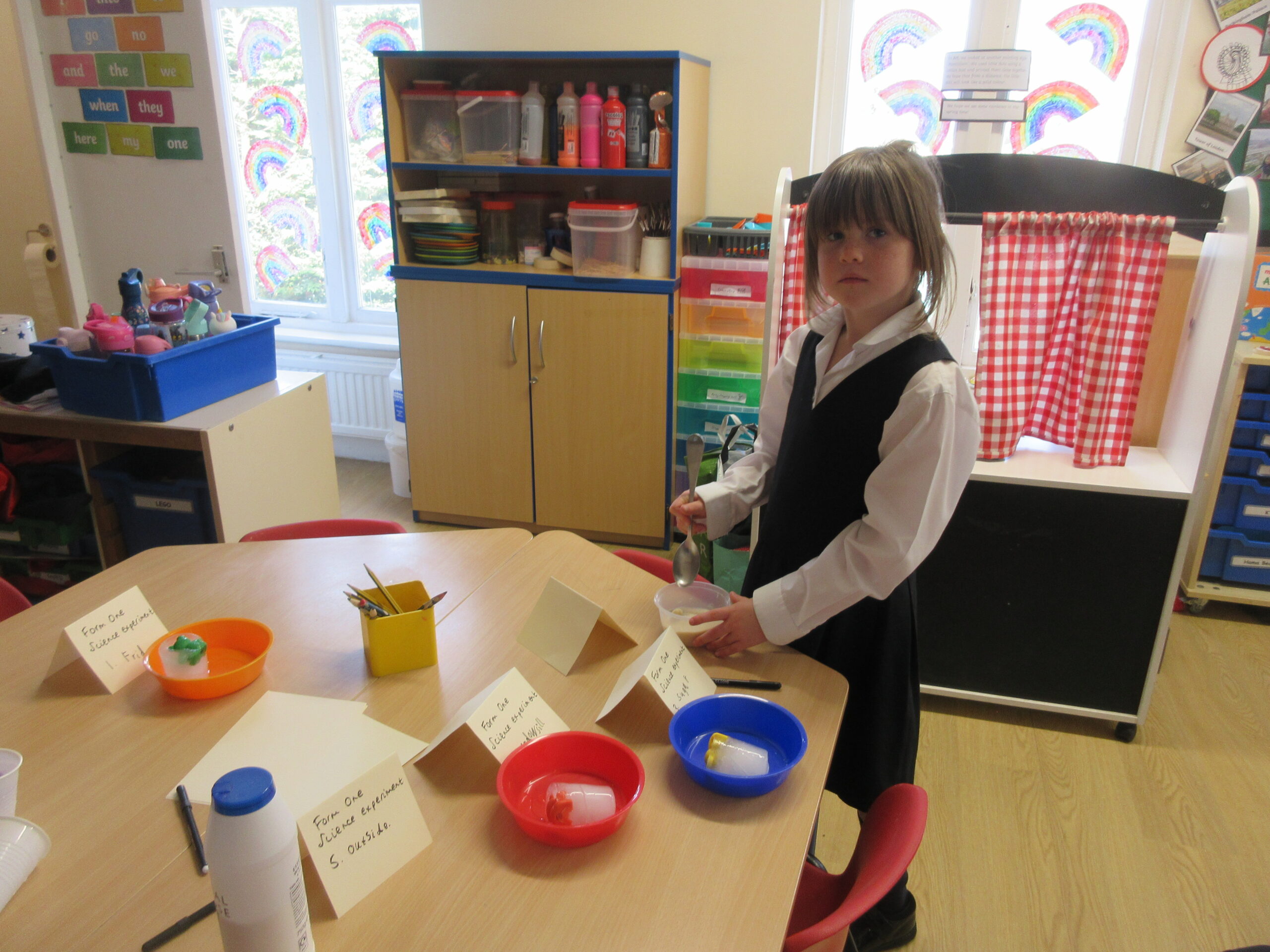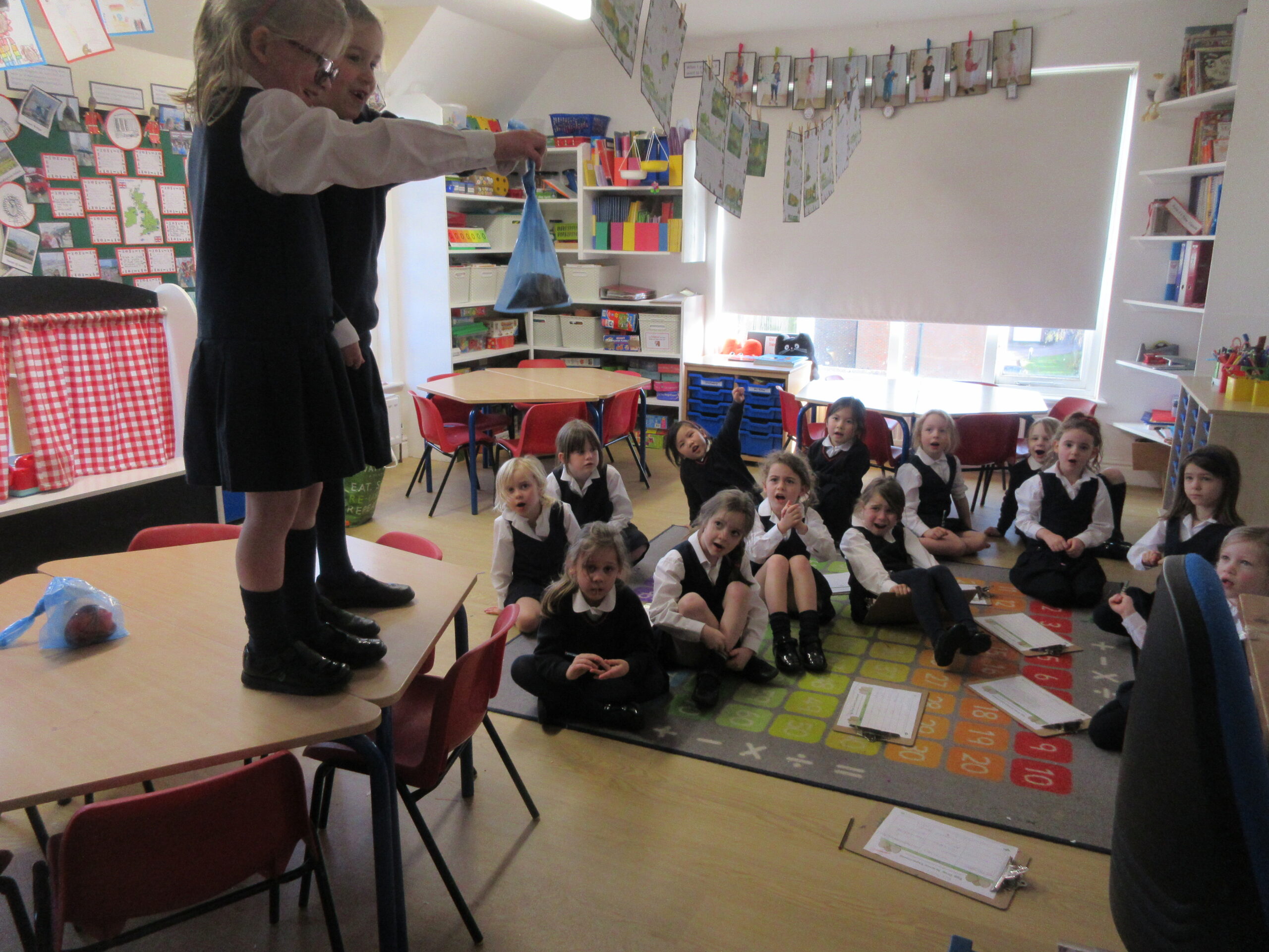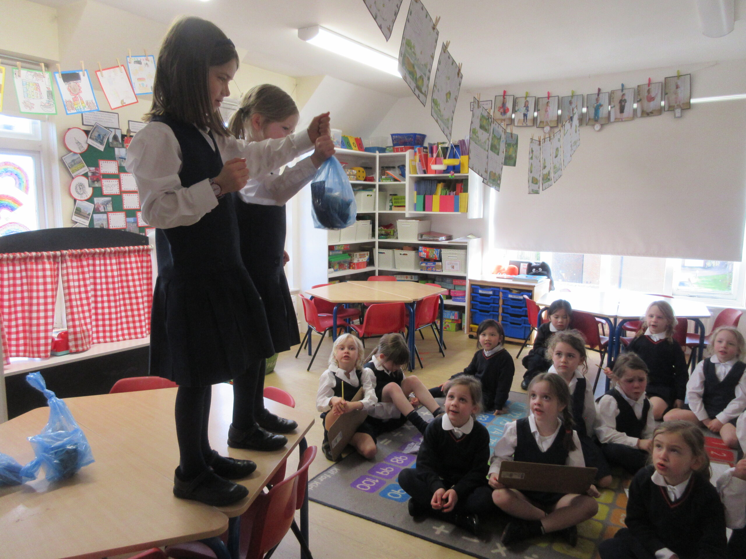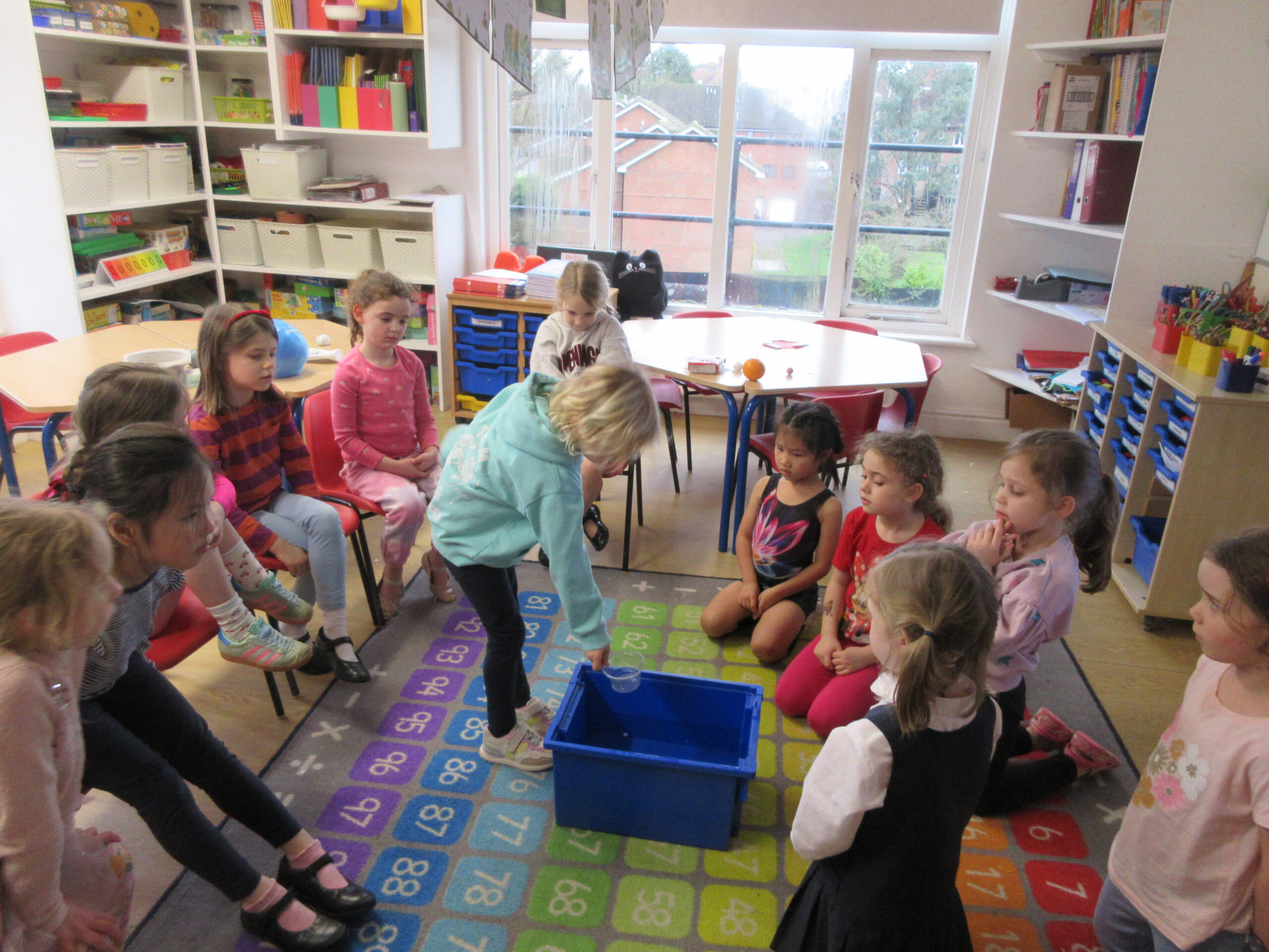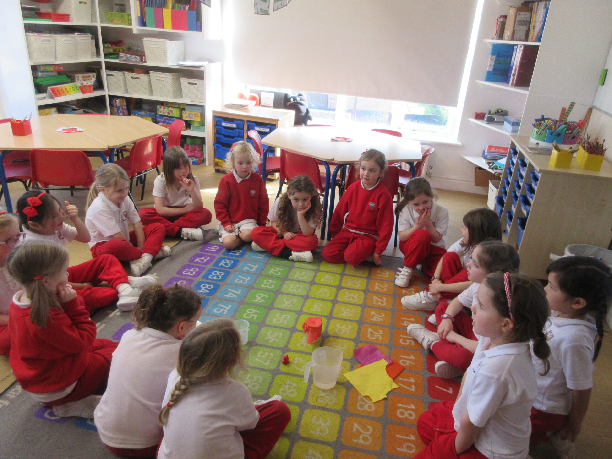 In Science, we enjoyed carrying out simple experiments using different materials. We tested different ways to melt ice to help little toys to escape, and discovered that the sun and salt help ice to melt the quickest. We also tested different materials to see which ones sink and float, and we tested which materials would make the best waterproof material for a coat in the rain.