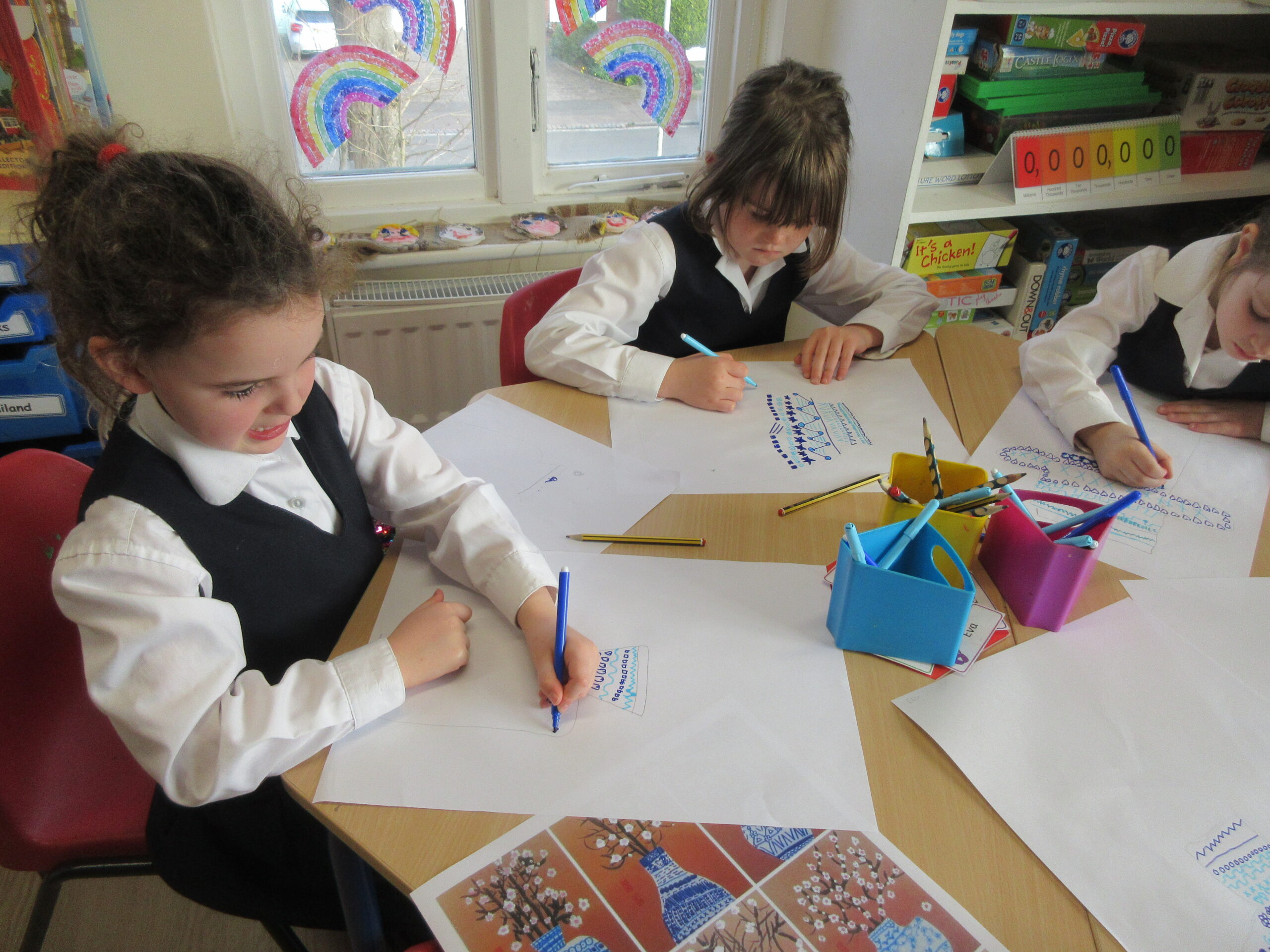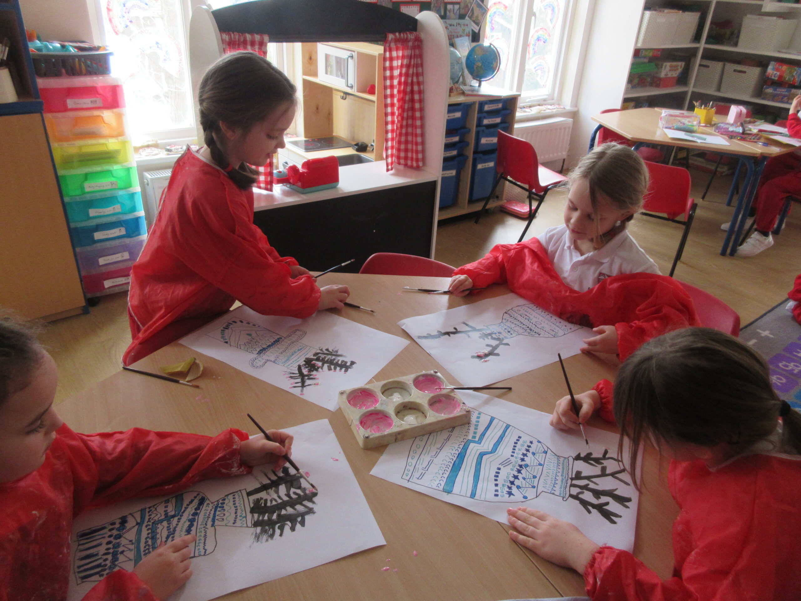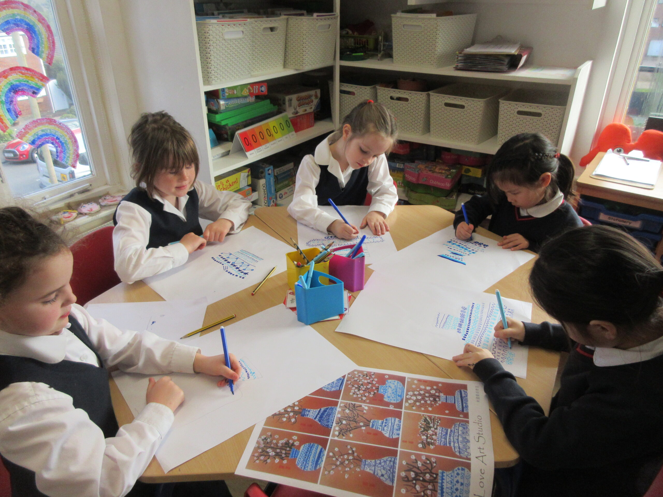 In Art, we travelled to Japan in our imaginations and drew the most beautiful blue and white vases. We painted spring blossom in them and gave them to our wonderful Mums for Mother’s Day.