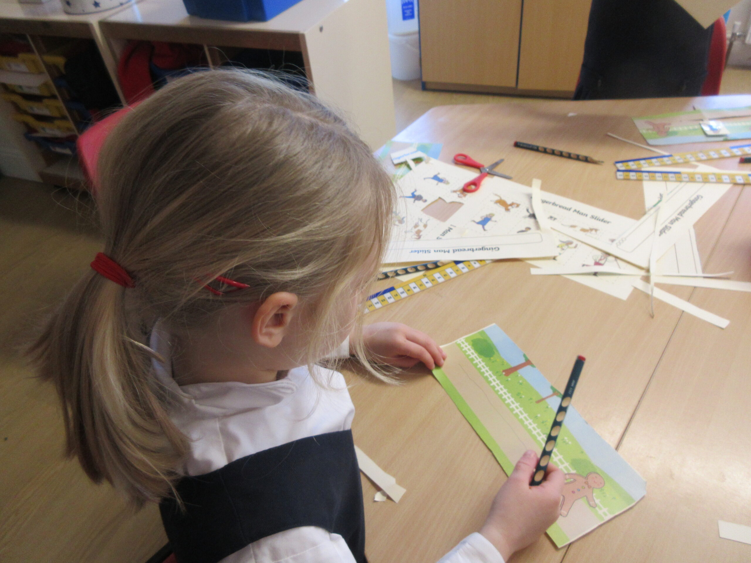 In Design and Technology, we learnt how to make moving pictures using simple mechanisms. We used a slider technique to make The Gingerbread Man move across a field. We then used the skills we had learnt to design our own moving Easter cards for our family.
