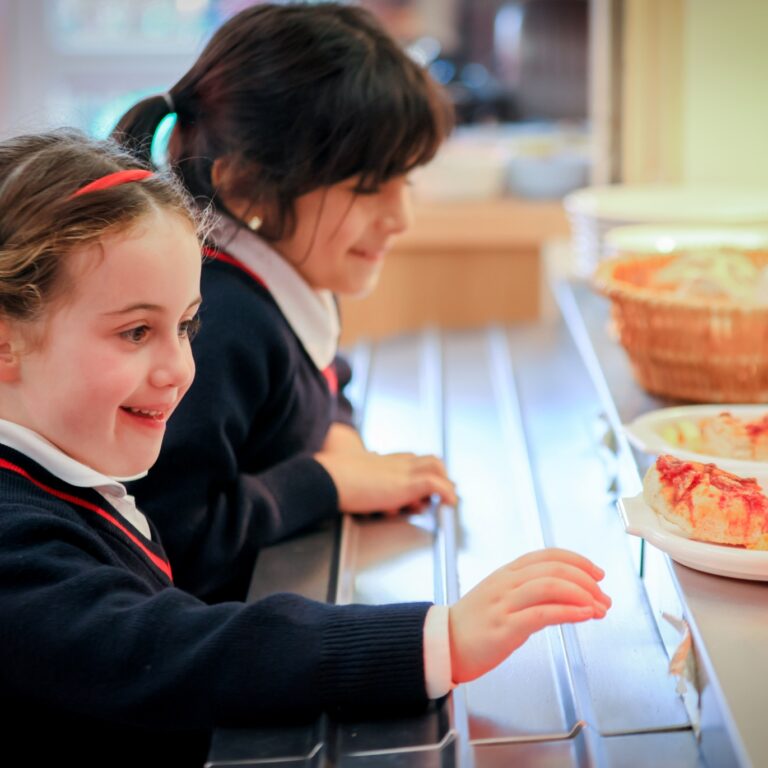 School lunches are freshly cooked in the kitchens by Catering Connect. A balanced and varied diet is offered, with the emphasis on fresh fruit and vegetables, and children are encouraged to try a variety of different foods; a hot vegetarian option is also available. School lunches are included in the cost of the fees.